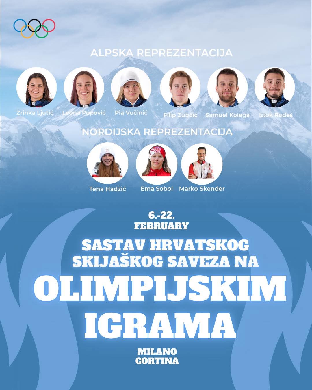 Na jučerašnjoj sjednici Izvršnog odbora Hrvatskog skijaškog saveza potvrđeni su svi natjecatelji/ice koji će na predstojećim Zimskim olimpijskim igrama, a koje se od 6. do 22. veljače 2026. održavaju u Italiji, Milano Cortina braniti boje Hrvatske u alpskom skijanju i skijaškom trčanju. Na ZOI nastupit će šest natjecatelja/ica u alpskom skijanju te troje natjecatelja/natjecateljica u skijaškom trčanju. Četvero natjecatelja dolaze iz klubova iz Primorsko-goranske županije i čiji su klubovi članovi Skijaškog saveza PGŽ. U skijaškom trčanju nastupi će Tena Hadžić ( SK Goranin ) , Ema Sobol ( SK Goranin ) i Marko Skender ( TSK Ravnogorac ). Teni i Marku to je već drugi nastup na ZOI dok je Emi prvi puta. Na Igrama će nastupiti i mrkopaljka Leona Popović ( SK Rijeka ) kojoj će ovo bit treće Zimske olimpijske igre na kojima će nastupiti.